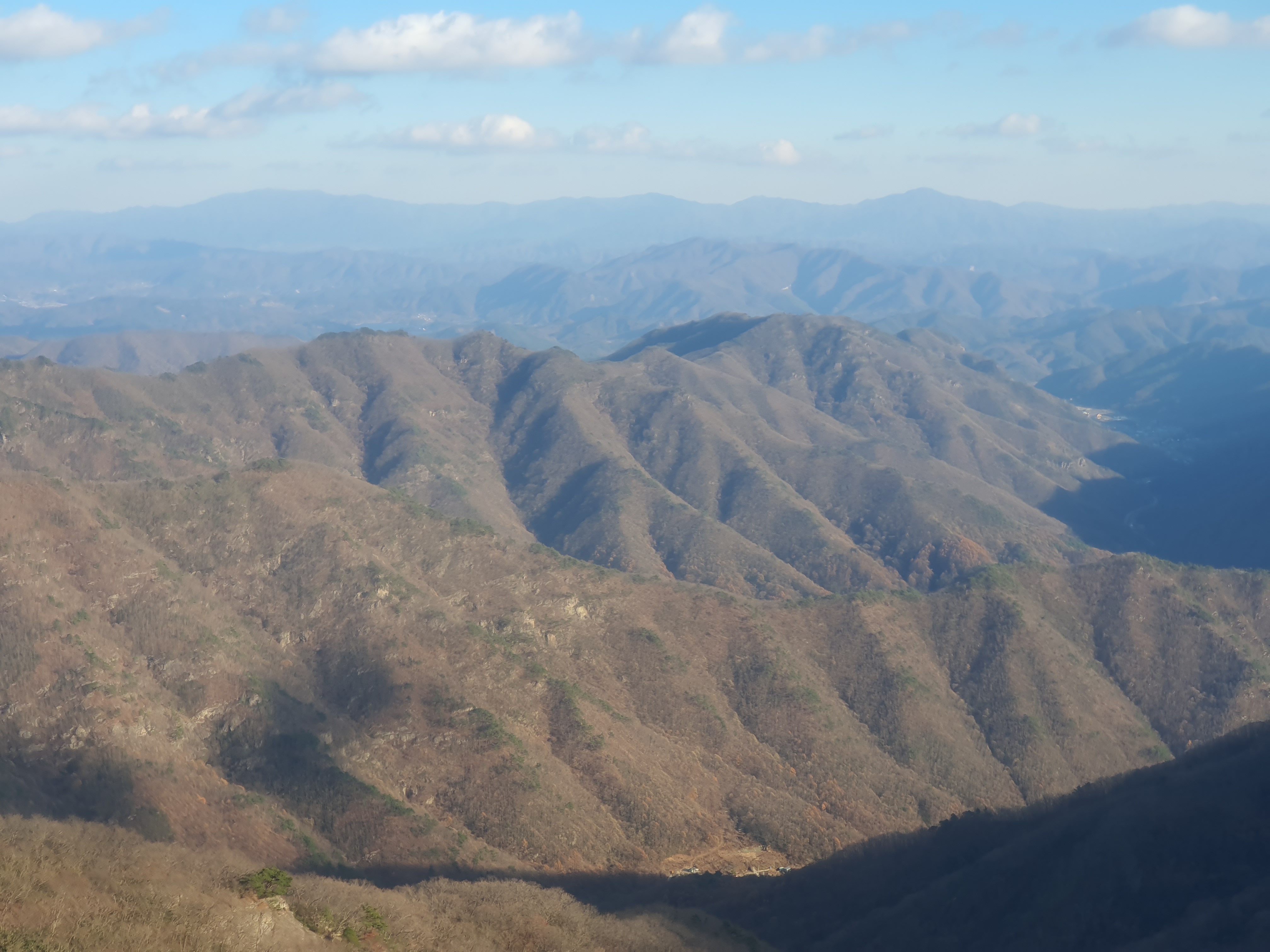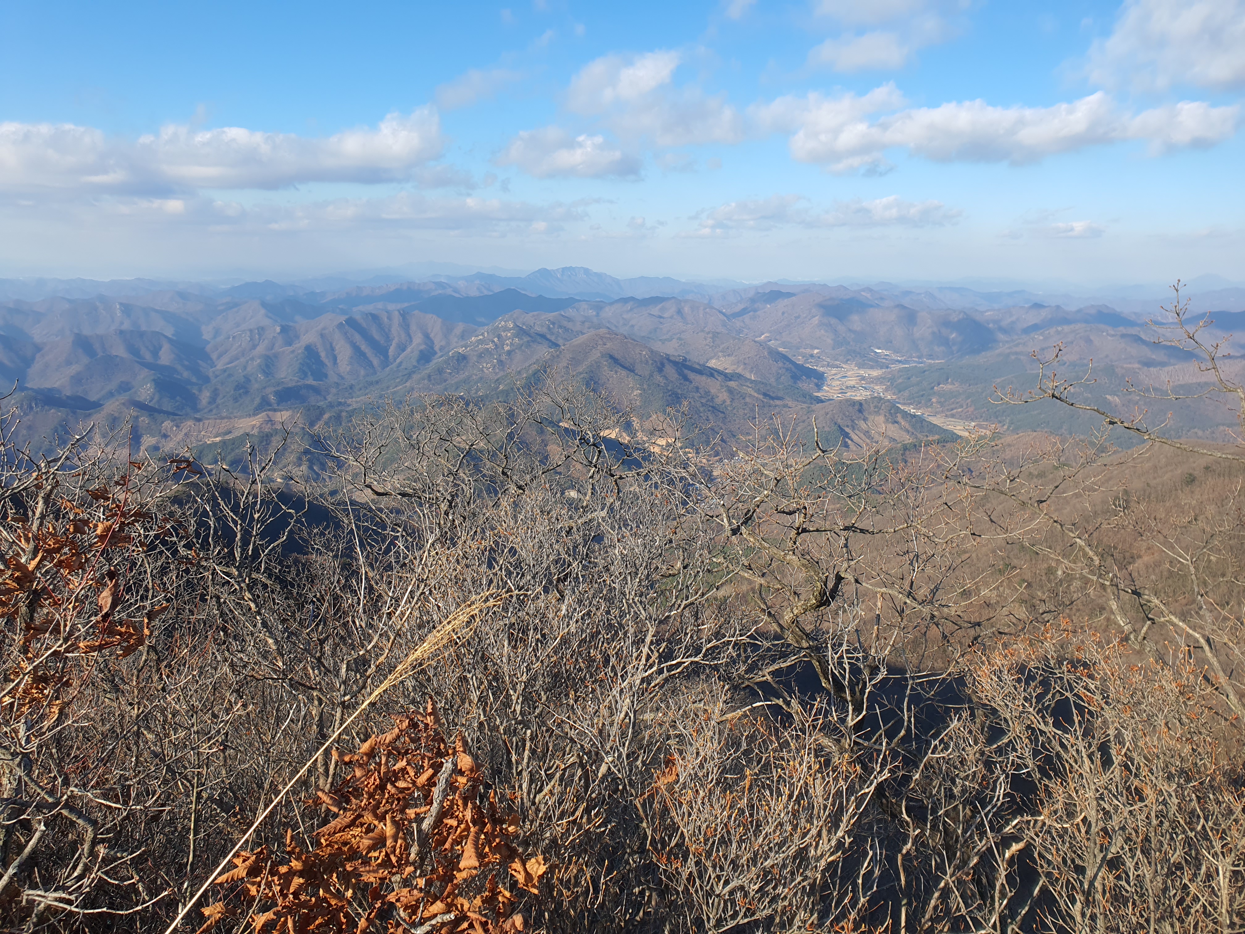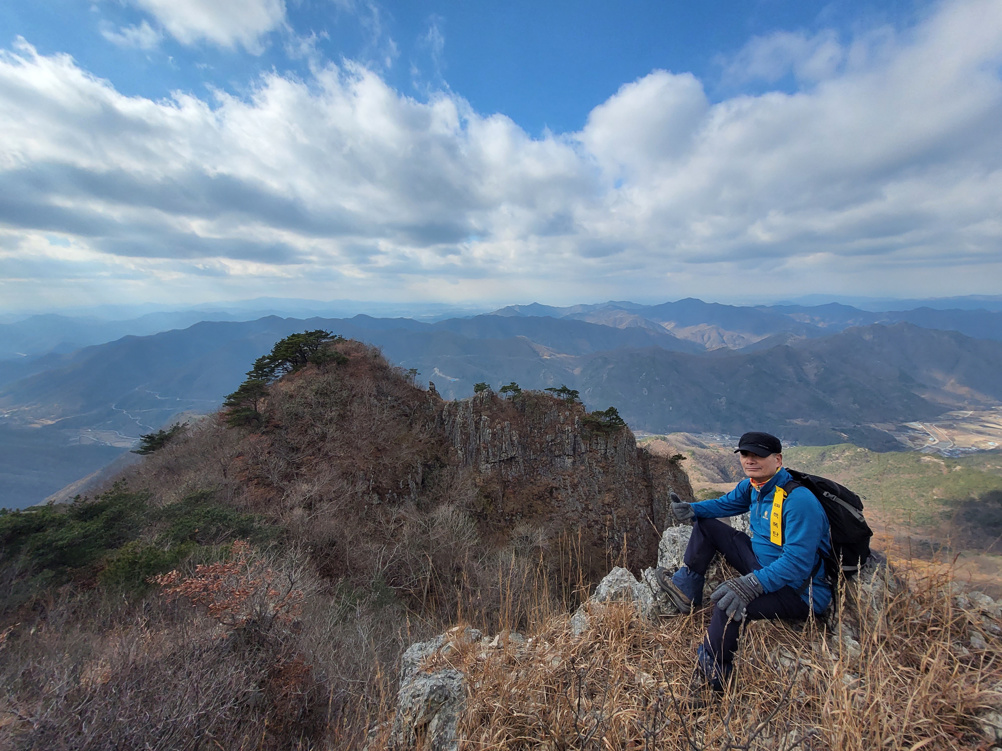 중간맨뒤로 대둔산 좌측뒤로 흐릿하게 계룡산이 조망된다.
