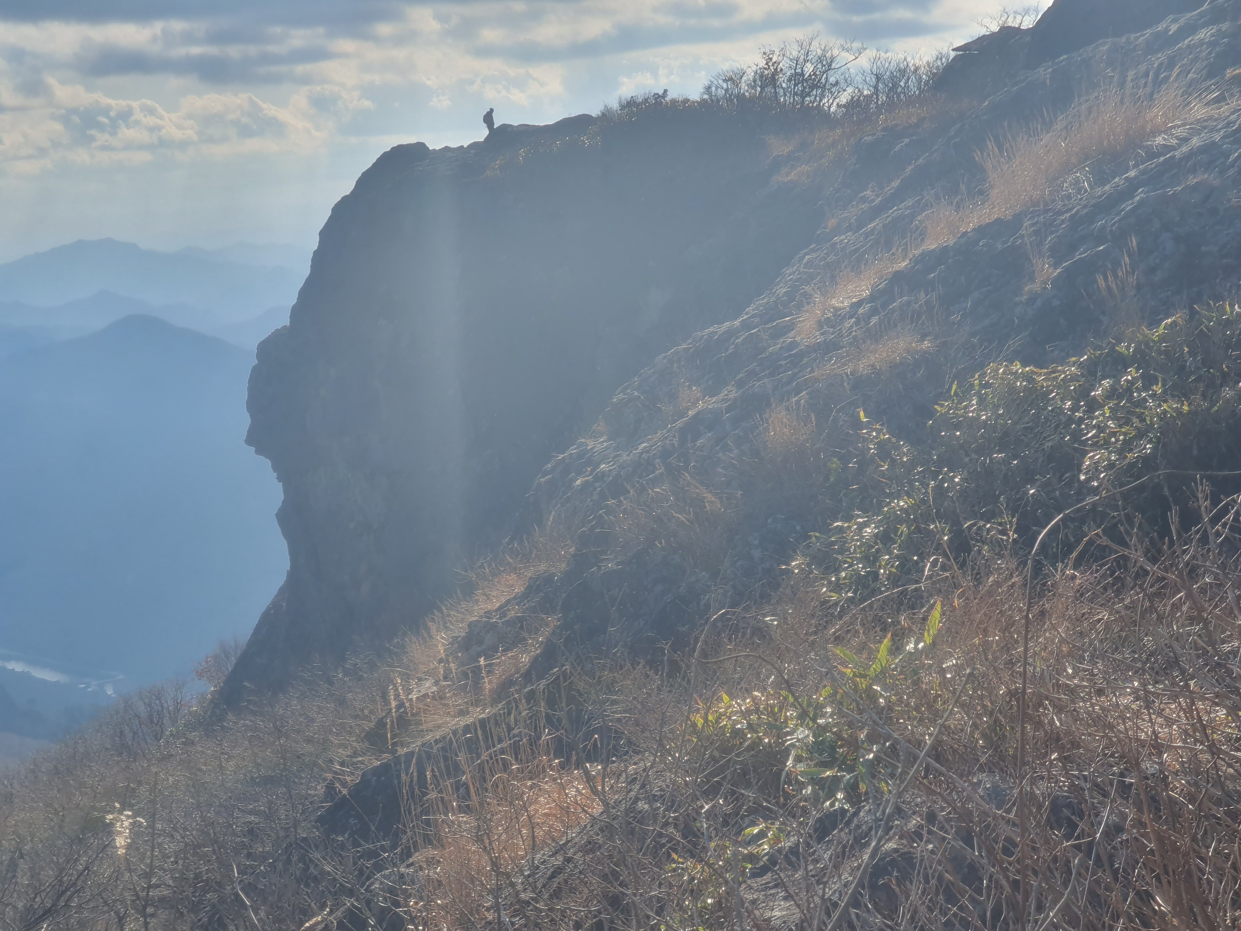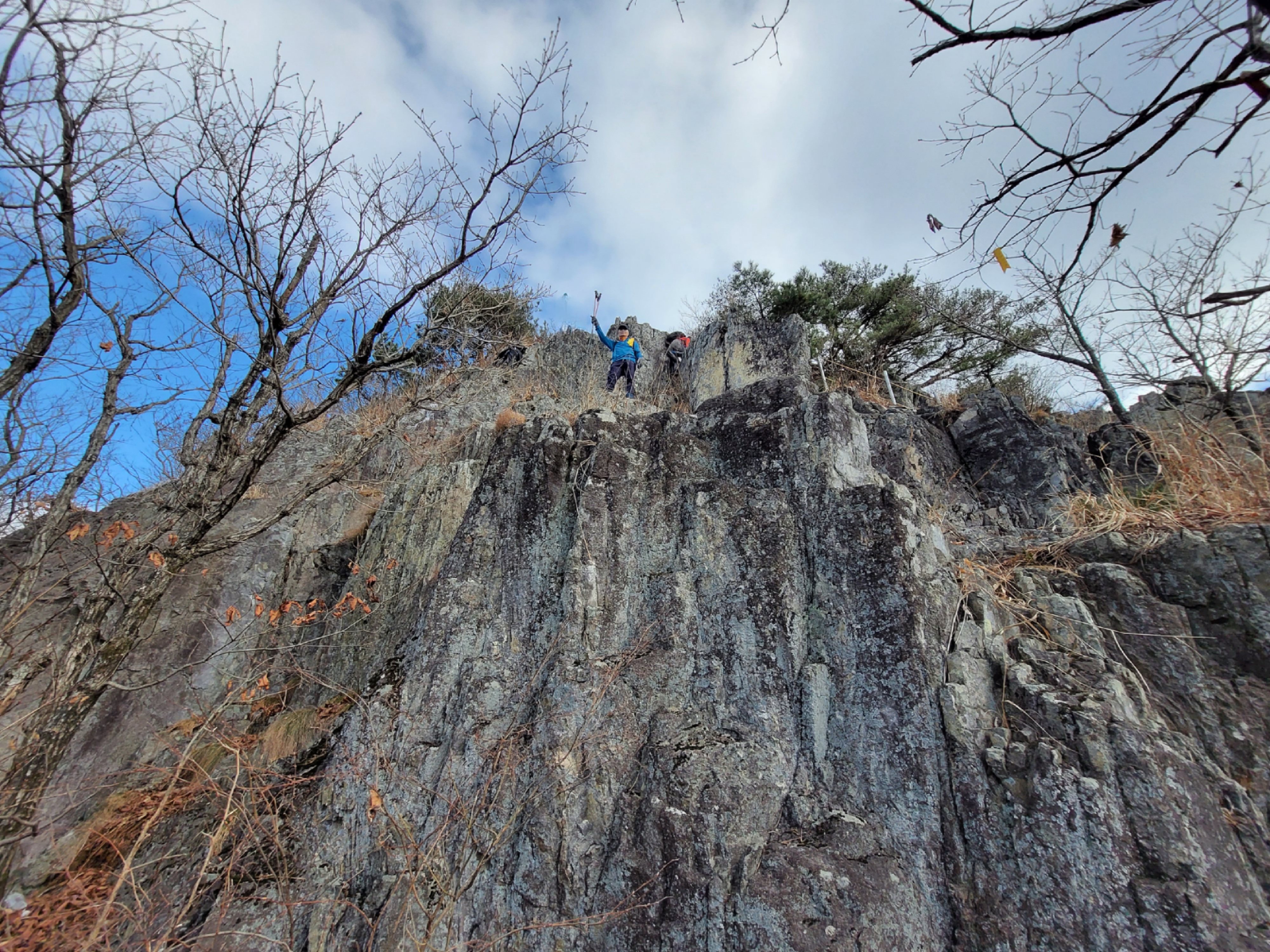 암봉끝나는지점에서 뒤돌아나오다가 좌측아래 암벽타고 조심스럽게 내려선다.